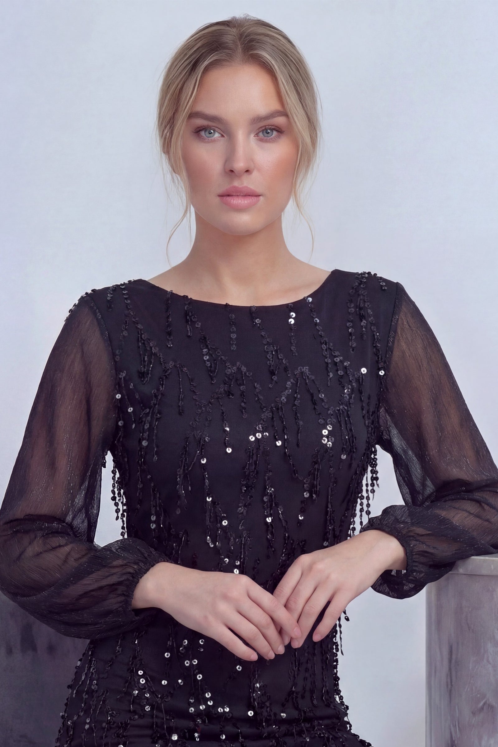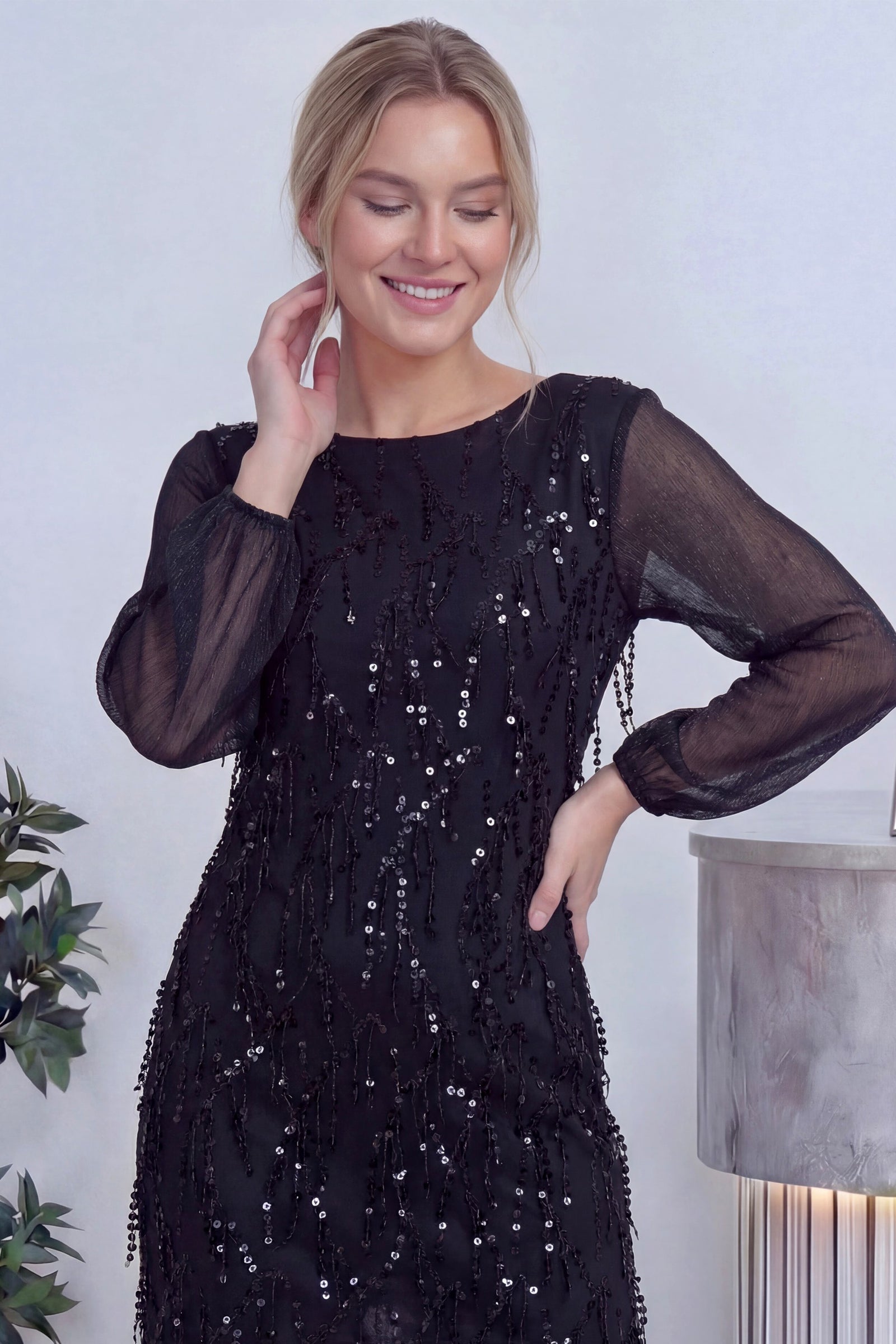 Siyah Kadın Büyük Beden Şifon Pulpayet Abiye Elbise