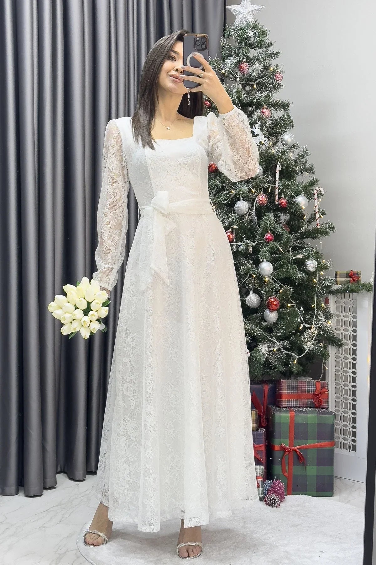 Kadın Beyaz Midi Dantel Elbise Romantik dantel dokusu ve zamansız beyaz tonuyla Kadın Beyaz Midi Dantel Elbise, her özel anınıza zarif bir dokunuş katar. Feminen detayları ve midi boy kesimi, şıklığınızla göz kamaştırmanızı sağlar. Renk ve Kumaş: Beyazın saf ve zarif tonu, dantel kumaşıyla birleşerek büyüleyici bir görünüm sunar. İnce işlenmiş dantel dokusu, elbiseye romantik bir hava katar. Tasarım Detayları: Midi Kesim: Diz hizasında biten bu uzunluk, hem şıklık hem de rahatlık sağlar. Dantel Detaylar: Tüm elbiseyi kaplayan dantel işçiliği, sofistike ve şık bir görünüm yaratır. Kolsuz ve Yuvarlak Yaka Tasarımı: Zarif bir siluet sunar ve aksesuarlara kolayca uyum sağlar. Vücuda Oturan Tasarım: Belinizi vurgulayan kesimiyle feminen bir duruş sergiler. Kumaş ve Konfor: Hafif yapısı ve nefes alabilir dokusuyla uzun süreli etkinliklerde dahi rahatlık sunar. Kullanım Alanları: Söz, nişan, nikah, mezuniyet ve kokteyl gibi özel etkinliklerde zarif bir tercih olarak öne çıkar. Topuklu ayakkabılar ve minimal takılarla tamamlanarak modern ve sade bir görünüm elde edilebilir. Faydaları: Beyaz dantel elbise, özel günlerde romantik ve şık bir stil yaratmak için mükemmeldir. Büyük beden seçenekleri, her vücut tipine uygun tasarımıyla kendinizi özgüvenli hissetmenizi sağlar. Bu zarif elbise, "beyaz midi dantel elbise," "nikah elbisesi zarif modeller," veya "büyük beden romantik elbiseler" gibi aramalarda kolayca bulunabilir. Şimdi The ZKS’i ziyaret edin ve gardırobunuza bu zarif tasarımı ekleyin!