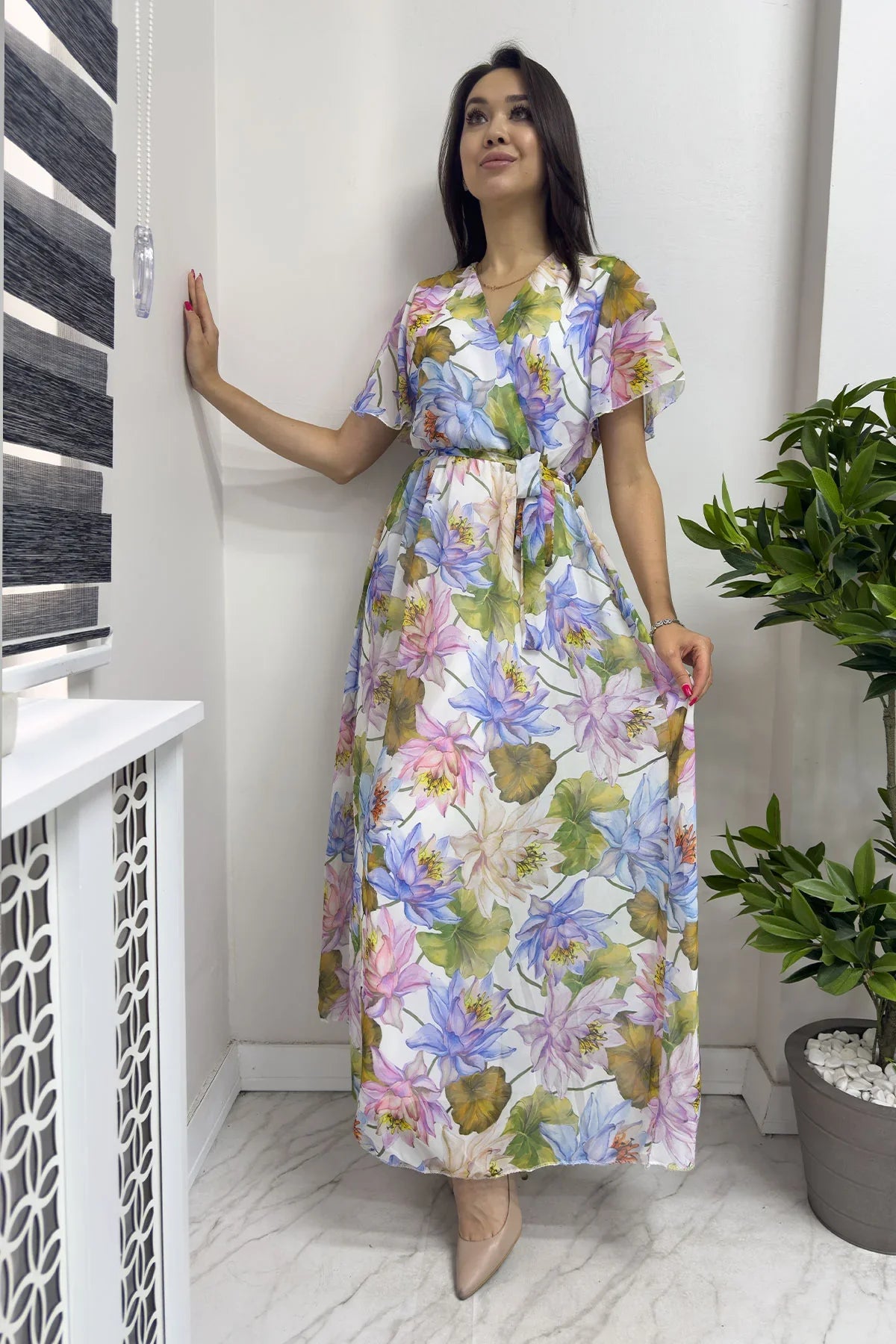 Site kodu: 000185 - Model Ölçüleri: Boy: 167cm Kilo 55 , Göğüs: 86 cm, Bel: 69 cm, Basen 95 cm Model Üzerindeki Ürün: S/36 Beden