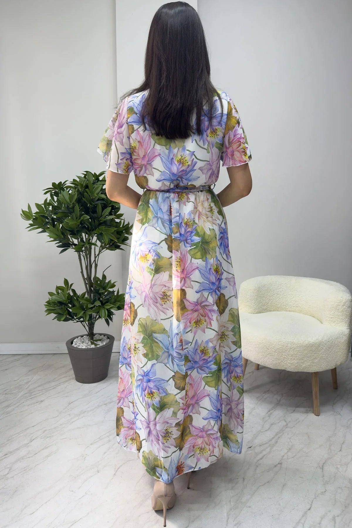 Kadın Çiçek Desen Şifon Elbise