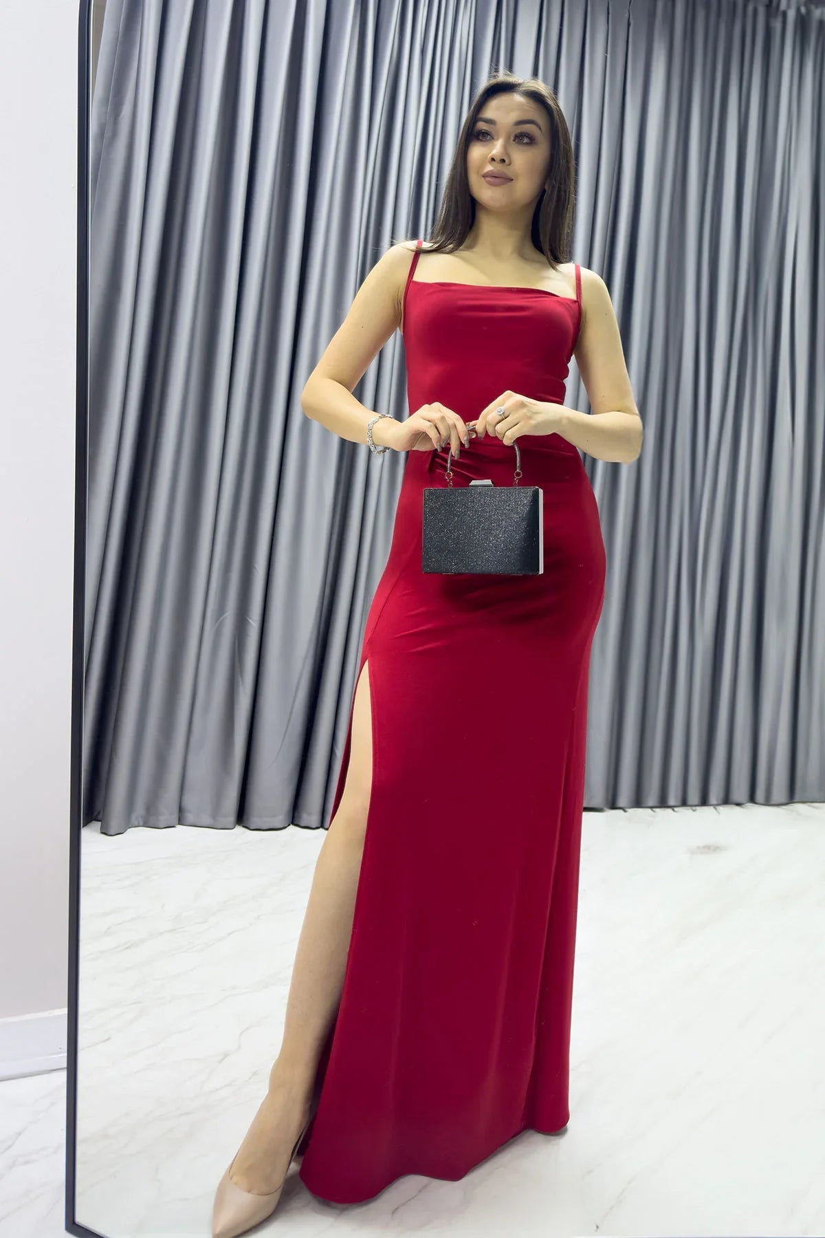 Kırmızı Scuba Yırtmaçlı Askılı Elbise Cesur kırmızı rengin modern scuba kumaşla buluştuğu Kırmızı Scuba Yırtmaçlı Askılı Elbise, şıklığıyla göz kamaştırmak isteyen kadınlar için tasarlandı. Feminen askılı kesimi ve etkileyici yırtmaç detayıyla her ortamda dikkatleri üzerinize çeker. Konforlu kumaşı ve zarif tasarımı sayesinde özel günlerden akşam davetlerine kadar geniş bir kullanım alanına sahiptir. Renk ve Kumaş Kırmızı Renk: Tutku ve enerjiyi temsil eden çarpıcı bir ton. Scuba Kumaş: Esnek, vücuda oturan ve konfor sağlayan kaliteli bir dokuma. Tasarım Detayları Askılı Tasarım: Omuzları zarif bir şekilde vurgular ve sofistike bir görünüm sunar. Yırtmaç Detayı: Modern bir hava kazandırır ve hareket özgürlüğü sağlar. Vücuda Oturan Kesim: İnce bir siluet oluşturarak feminen bir duruş sergiler. Diz Üstü veya Diz Altı Seçenekleri: Özel etkinlikler veya günlük kullanım için farklı boy alternatifleri sunar. Kumaş ve Konfor Esnek scuba kumaşı, gün boyu rahatlık ve hareket özgürlüğü sunar. Hafif ve nefes alabilir yapısı sayesinde uzun süreli etkinliklerde bile konfor sağlar. Dayanıklı dokusu, formunu koruyarak uzun ömürlü kullanım sağlar. Kullanım Alanları Resmi Davetler: Altın takılar ve zarif topuklu ayakkabılarla sofistike bir kombin oluşturabilirsiniz. Akşam Yemekleri: Minimalist bir clutch ve sade aksesuarlarla tamamlayarak etkileyici bir görünüm elde edebilirsiniz. Partiler ve Etkinlikler: Enerjik kırmızı tonu ve modern tasarımıyla dikkat çekici bir seçimdir. Romantik Buluşmalar: Feminen kesimiyle zarafetinizi ön plana çıkarır. Faydaları Kırmızı rengin enerjisi ve scuba kumaşın konforu bir araya gelerek şıklık sunar. Yırtmaç detayı, modern ve çarpıcı bir stil oluşturur. Askılı tasarımı, sofistike bir siluet ve zarif bir duruş kazandırır. Çok yönlü tasarımı, hem özel günlerde hem de günlük yaşamda rahatlıkla kullanılabilir. Bu dikkat çekici ve zarif elbise, "kırmızı scuba elbise," "yırtmaç detaylı askılı elbiseler," veya "şık ve modern abiye modelleri" gibi aramalarda öne çıkar. Şimdi The ZKS’i ziyaret edin ve bu etkileyici tasarımla stilinize cesur bir dokunuş katın! ❤️✨👗