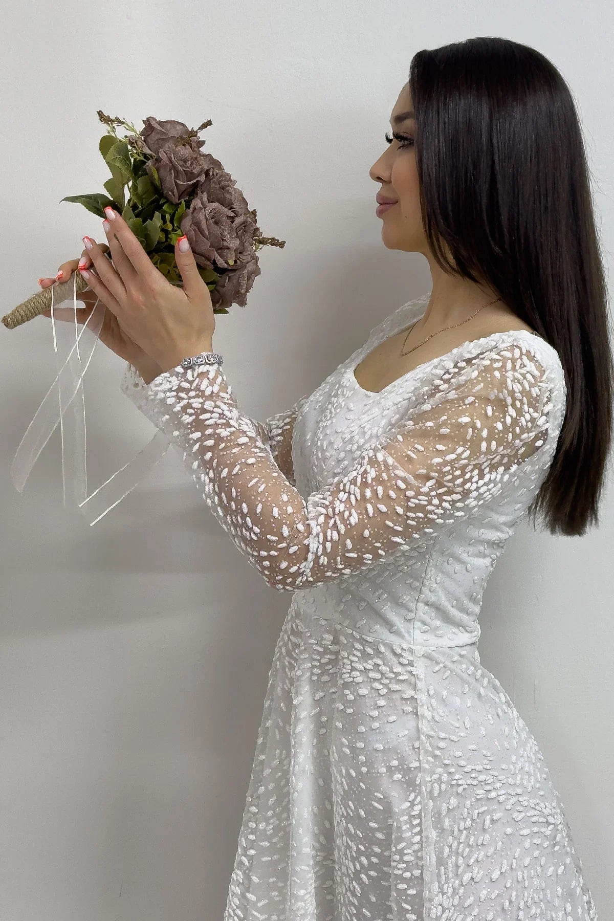 Beyaz Kare Yaka Nakışlı Kloş Abiye Elbise Zarif beyaz tonu ve detaylı nakış işçiliğiyle tasarlanan Beyaz Kare Yaka Nakışlı Kloş Abiye Elbise, romantik ve sofistike bir stil sunar. Kare yaka tasarımı ve akışkan kloş eteğiyle dikkat çeken bu elbise, özel günlerde zarafetiyle göz doldurur. Renk ve Kumaş Beyaz Renk: Saflık ve zarafetin simgesi, özellikle nişan, nikah ve söz gibi özel etkinlikler için ideal. Nakış Detaylı Kumaş: İnce işçilikle tasarlanmış, elbiseye sanatsal ve romantik bir dokunuş katar. Hafif ve Akışkan Kumaş: Konforlu bir kullanım ve zarif bir duruş sağlar. Tasarım Detayları Kare Yaka: Dekolteyi zarifçe vurgulayan modern ve feminen bir tasarım. Kloş Kesim: Belden itibaren genişleyen etek, zarif bir hareketlilik ve konfor sunar. Nakış İşlemeler: Elbiseye estetik bir derinlik ve romantik bir hava katar. Midi veya Maxi Boy: Farklı etkinlikler için ideal uzunluk seçenekleri. Kumaş ve Konfor Hafif yapısı sayesinde gün boyu rahatlık sağlar. Akışkan kumaşı, hareket özgürlüğü ve şık bir duruş sunar. Kullanım Alanları Nikah ve Söz Törenleri: Minimalist takılar ve zarif topuklu ayakkabılarla kombininizi tamamlayarak unutulmaz bir görünüm elde edebilirsiniz. Düğün ve Davetler: İnci detaylı aksesuarlar ve şık bir clutch çantayla sofistike bir stil yaratabilirsiniz. Romantik Yemekler: Zarif bir şal ve ince bir kolye ile kombininizi sade ama etkileyici hale getirebilirsiniz. Mezuniyet ve Özel Etkinlikler: Parlak bir clutch ve sade stilettolarla enerjik bir görünüm yakalayabilirsiniz. Faydaları Beyaz rengi, saf ve zarif bir görünüm sunar. Kare yaka tasarımı, modern ve feminen bir stil kazandırır. Nakış detayları, elbiseye sanatsal ve romantik bir dokunuş ekler. Kloş kesimi, her vücut tipine uygun, rahat ve şık bir duruş sağlar. Bu romantik ve zarif elbise, "beyaz nakışlı abiye," "kloş kesim modern elbise," veya "söz ve nikah elbisesi modelleri" gibi aramalarda öne çıkar. Şimdi The ZKS’i ziyaret edin ve bu özel tasarımla stilinize zarafet katın! 🤍✨👗