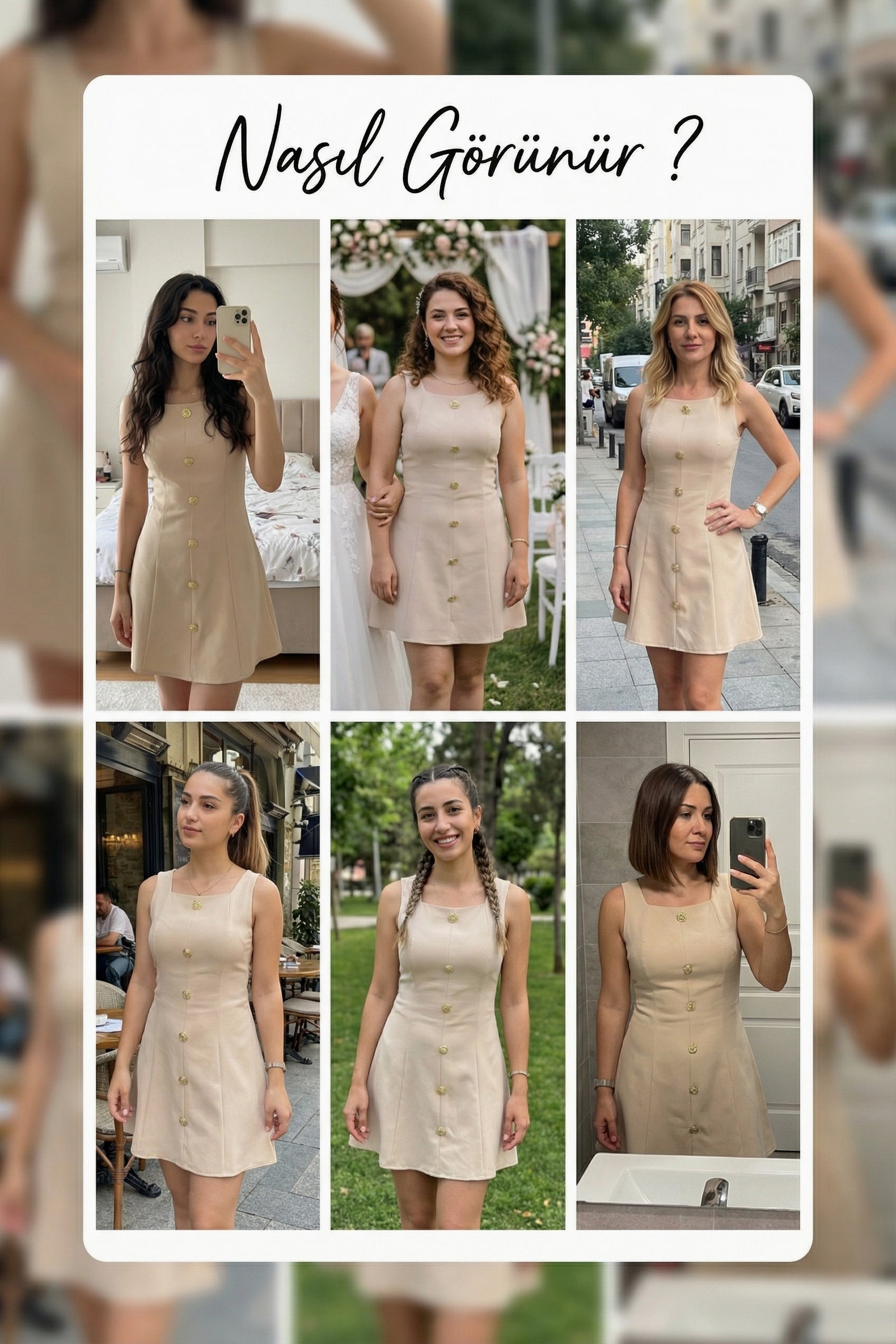 Kadın Bej Düğme Detaylı Mini Elbise, sade ve doğal tonları modern bir mini boy kesimle bir araya getirerek enerjik ve zarif bir stil sunar. Bej rengin yumuşak ve dengeli etkisi, mini elbise formunun dinamik yapısı ile birleşerek hem günlük hem de şık kombinler için güçlü bir alternatif oluşturur. Bej Rengin Doğal Zarafeti Bej tonları, her sezon rahatlıkla kullanılabilen zamansız renkler arasında yer alır. Sade ama şık bir görünüm sunar. Açık ton ayakkabı ve çantalarla kombinlendiğinde yumuşak bir stil oluşturur, siyah veya kahverengi aksesuarlarla birlikte kullanıldığında ise daha net bir duruş sağlar. Bej renk, açık, buğday ve esmer ten tonlarıyla uyum sağlar. Gün ışığında sıcak bir görünüm sunarken, iç mekan kombinlerinde daha sofistike bir hava yaratır. Mini Boy ile Enerjik Siluet Mini boy kesim, bacak boyunu daha uzun gösterir ve hareketli bir stil sunar. Özellikle yaz ve bahar aylarında rahatlıkla tercih edilebilir. Günlük kombinlerde sandalet veya sneaker ile kullanılabilirken, akşam kombinlerinde topuklu ayakkabı ile daha şık bir görünüm elde edilebilir. Mini elbise formu sayesinde hem genç hem de modern bir hava yakalanır. Düğme Detayının Katkısı Ön bölümde yer alan düğme detayları tasarıma hareket kazandırır. Sade bej tonuna karakter ekleyen bu detay, modeli düz mini elbiselerden ayırır. Dengeli yerleşimi sayesinde hem günlük hem de daha özenli kombinlerde rahatlıkla tercih edilebilir. Konforlu Kalıp Vücuda hafifçe oturan yapısı sayesinde silueti belirginleştirir ancak rahatsız edici bir sıkılık oluşturmaz. Günlük kullanımda hareket özgürlüğü sunar. Yumuşak dokulu kumaşı ciltle temas ettiğinde konfor sağlar. Nefes alabilen yapısı sayesinde özellikle sıcak havalarda rahat bir kullanım sunar. Kombin Önerileri Günlük kullanım için beyaz sneaker ve çapraz çanta ile kombinleyebilirsiniz. Sandalet ve hasır çanta ile yazlık bir görünüm oluşturabilirsiniz. Akşam kombinlerinde ince topuklu ayakkabı ve küçük bir el çantası ile daha şık bir stil yakalayabilirsiniz. Altın ton aksesuarlarla bej rengin sıcaklığını ön plana çıkarabilirsiniz. Kullanım Alanları Günlük şehir kombinleri Yaz buluşmaları Tatil kombinleri Doğum günü organizasyonları Akşam yemekleri