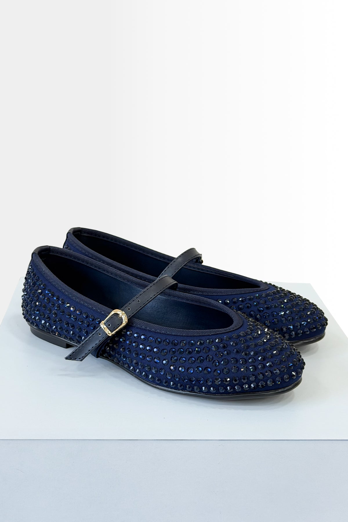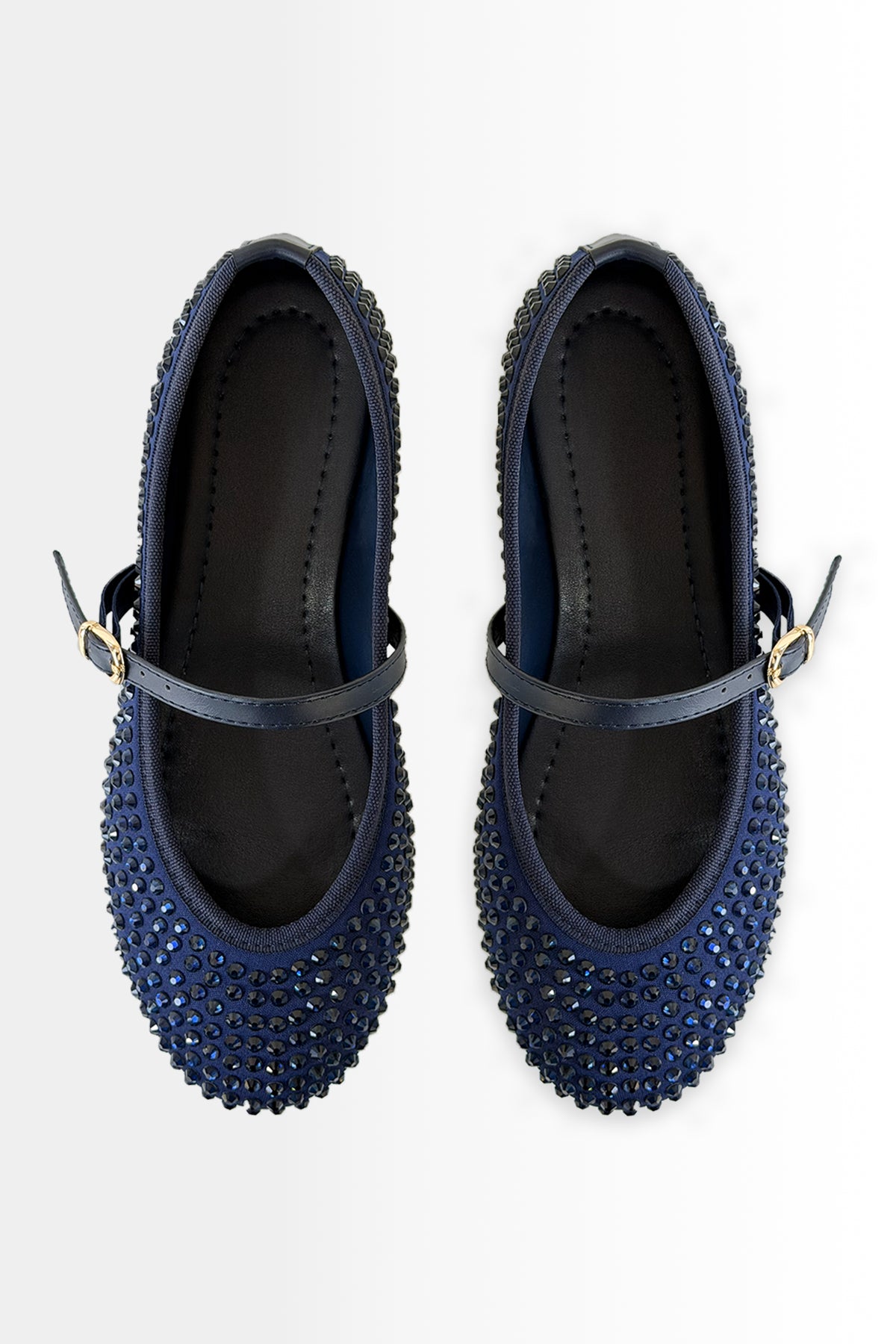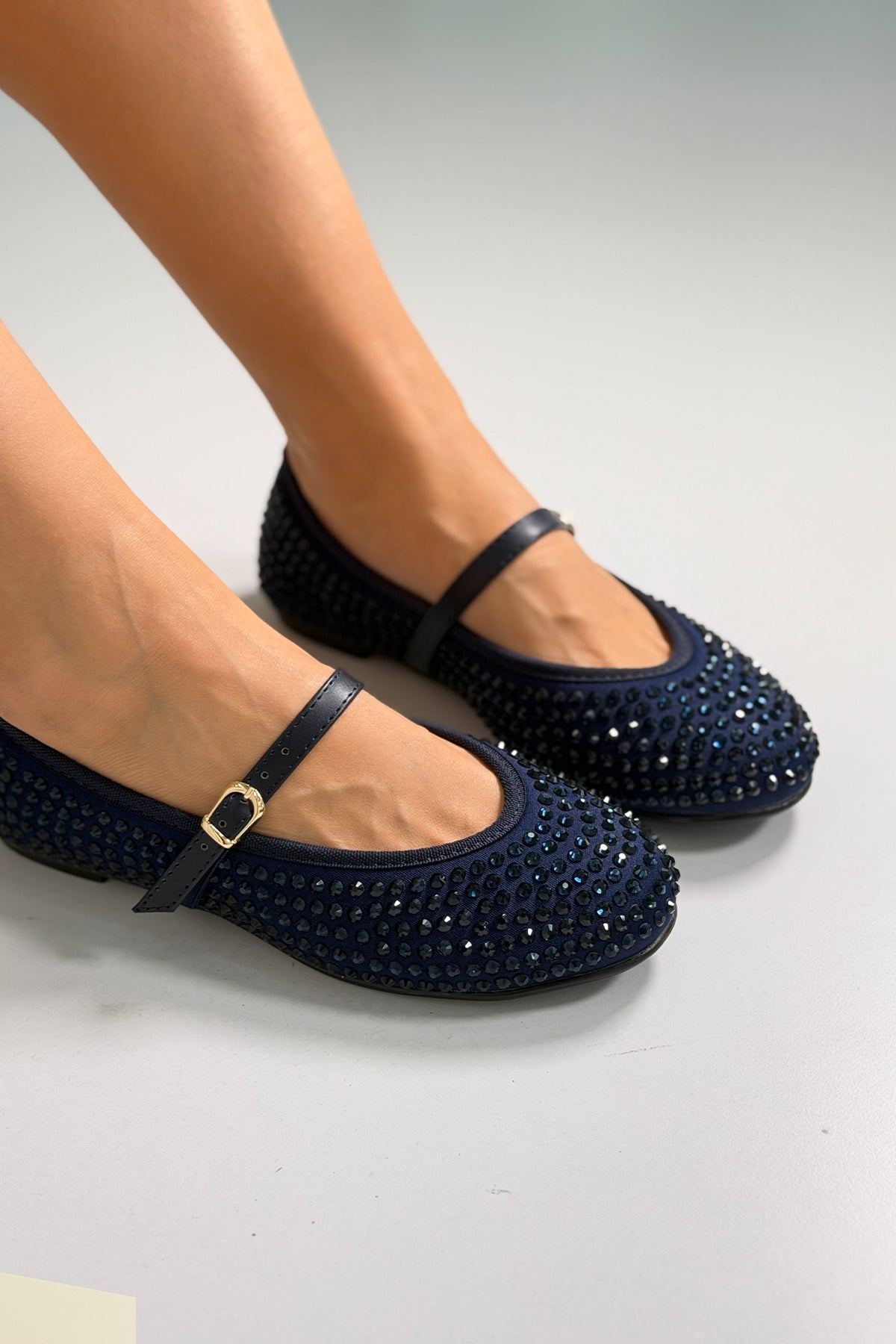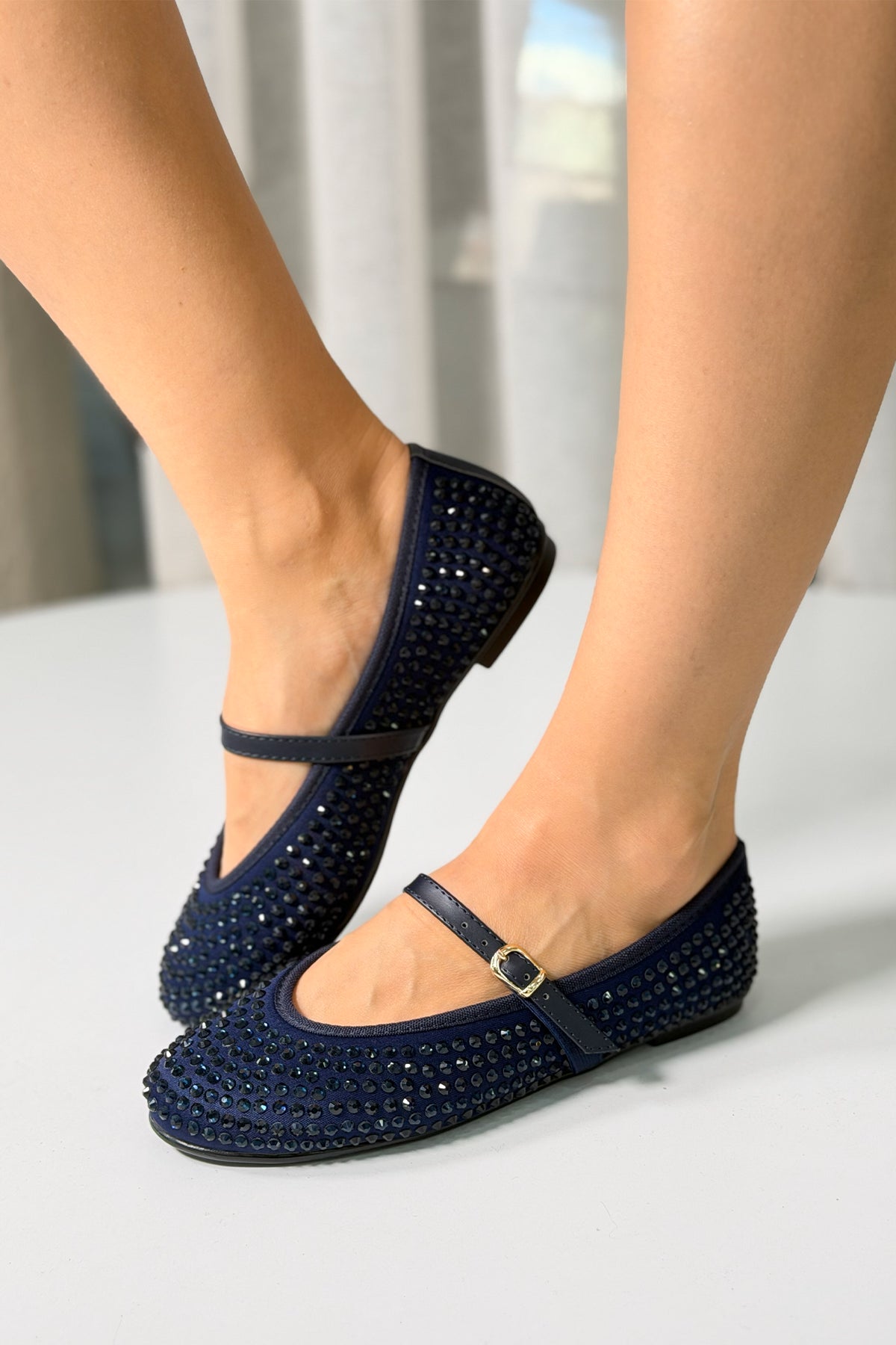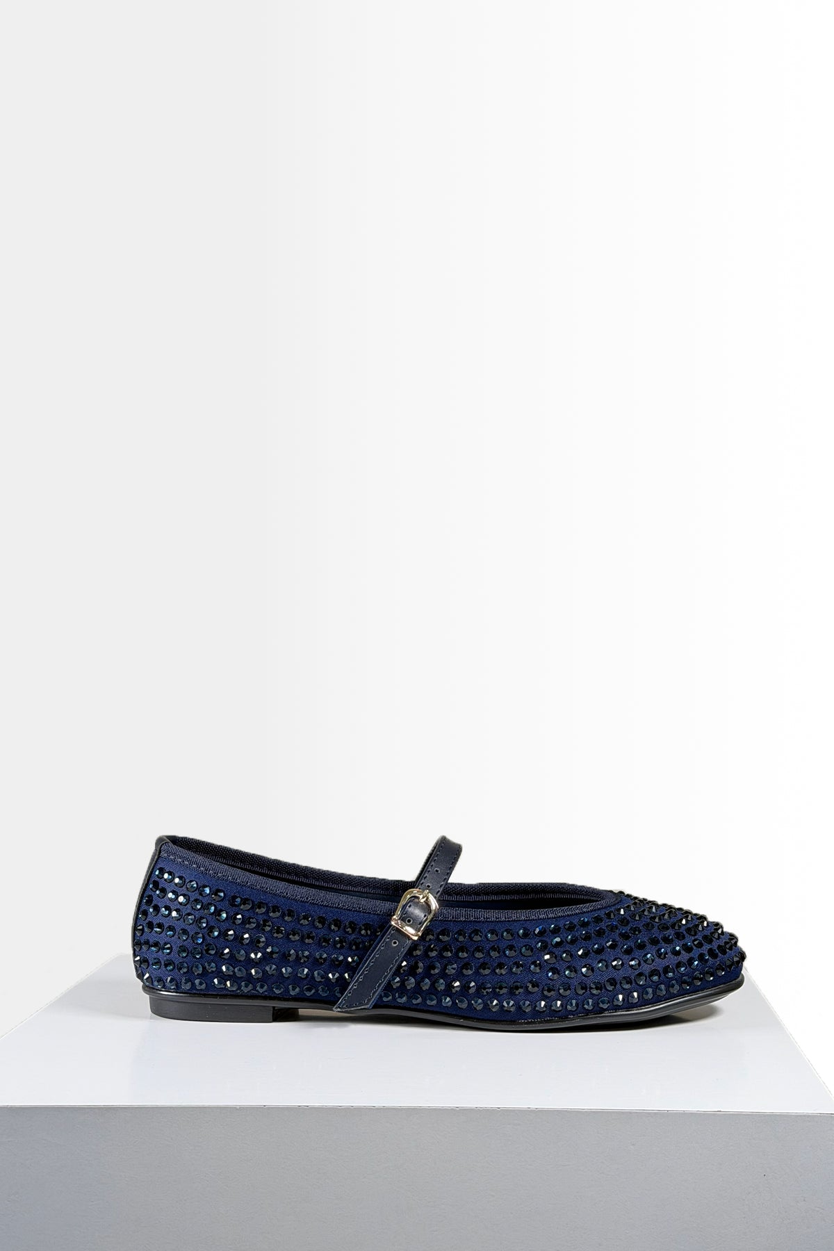 Kadın Lacivert Taş Detaylı Tokalı Babet