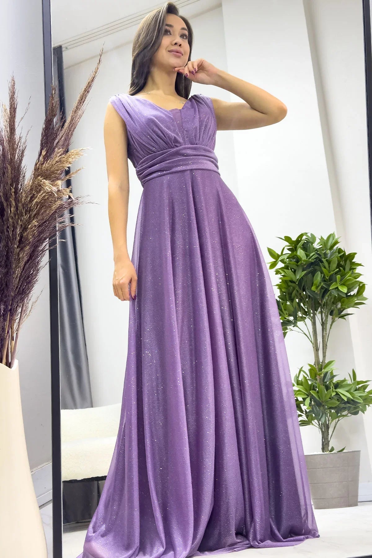 Kadın Koyu Lila Sıfır Kol Transparan Detay Abiye Elbise Romantik bir tasarımı zarif detaylarla buluşturan Kadın Koyu Lila Sıfır Kol Transparan Detay Abiye Elbise, özel günlerde şıklığınızla fark yaratmanız için tasarlandı. Feminen kesimi ve modern transparan detayları, sofistike bir görünüm sunar. Renk ve Kumaş: Koyu lila renginin huzur veren ve sofistike tonu, elbiseye romantik ve dikkat çekici bir hava katar. Hafif ve zarif kumaşı, konforlu bir kullanım sağlar. Tasarım Detayları: Sıfır Kol Kesimi: Kol açıklığı sayesinde modern ve şık bir görünüm sunar, sıcak günler için idealdir. Transparan Detaylar: Göğüs ve bel çevresindeki transparan tasarım, zarif bir dokunuş katarak feminenliği ön plana çıkarır. Akıcı Etek Kesimi: Şık ve akıcı bir tasarım sunarak hareket kolaylığı sağlar. Kumaş ve Konfor: Nefes alabilir yapıya sahip hafif kumaşı, uzun süreli etkinliklerde dahi rahatlık sunar. Kullanım Alanları: Düğün, nişan, gala ve mezuniyet gibi özel etkinliklerde koyu lilayı zarif detaylarla birleştirerek göz alıcı bir stil yaratabilirsiniz. Faydaları: Minimal aksesuarlarla zarif bir görünüm yakalayabilir, daha gösterişli takılarla tamamlandığında iddialı bir stil elde edebilirsiniz. Büyük beden seçenekleri, her vücut tipine uygun bir deneyim sunarak kendinizi özel hissetmenizi sağlar. Bu göz alıcı elbise, "koyu lila transparan abiye," "sıfır kol davet elbisesi," veya "büyük beden lila abiye modelleri" gibi aramalarda kolayca bulunabilir. Şimdi The ZKS’i ziyaret edin ve gardırobunuza romantik bir zarafet ekleyin!